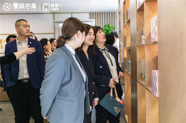 最后,在万众期待下,星联芒果集团董事长王永光、春雨医生副总裁何小建、华本投资董事李先科、星联芒果集团多元化集团董事长郝伊凝、星联芒果集团多元化集团总裁梁红伟五位领导共同登台,携手为星联芒果集团落地的首家智慧健康服务中心剪彩揭幕,共同开启健康人居的星联新篇!