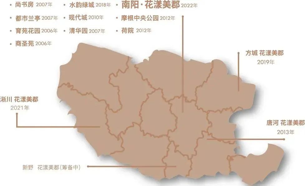 明伦集团19年,坚持长期主义产品观,不断根据市场变化与客户需求,持续创新与变革,根据不同区域的特点与文化底蕴,为每一座城定制化设计产品。目前集团TOP级“郡系”产品形成南阳·花漾美郡、方城·花漾美郡、淅川·花漾美郡、唐河·花漾美郡,四城四郡的分布格局,为业主营造不同的舒适宜居空间体验。