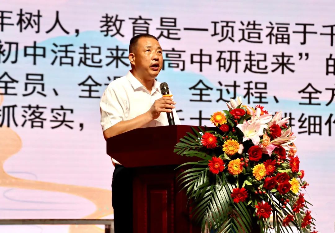 会议最后,张廷哲书记为大会作总结讲话,念及第四完全学校四年多来的建校历程,张书记感慨良多:从建校时的百业待举、万事待兴,到如今学校义务教育阶段学位“一位难求”,高考成绩再次创造“低进高出”奇迹。希望全体教师继续发扬“十年树木,百年树人”的精神,以四全为家、以国为本,俯身躬耕、潜心育人。精诚团结、踔厉奋发的四全人,定将开创学校更加辉煌灿烂的明天,让油田教育品牌真正扎根南阳、叫响宛州大地!
